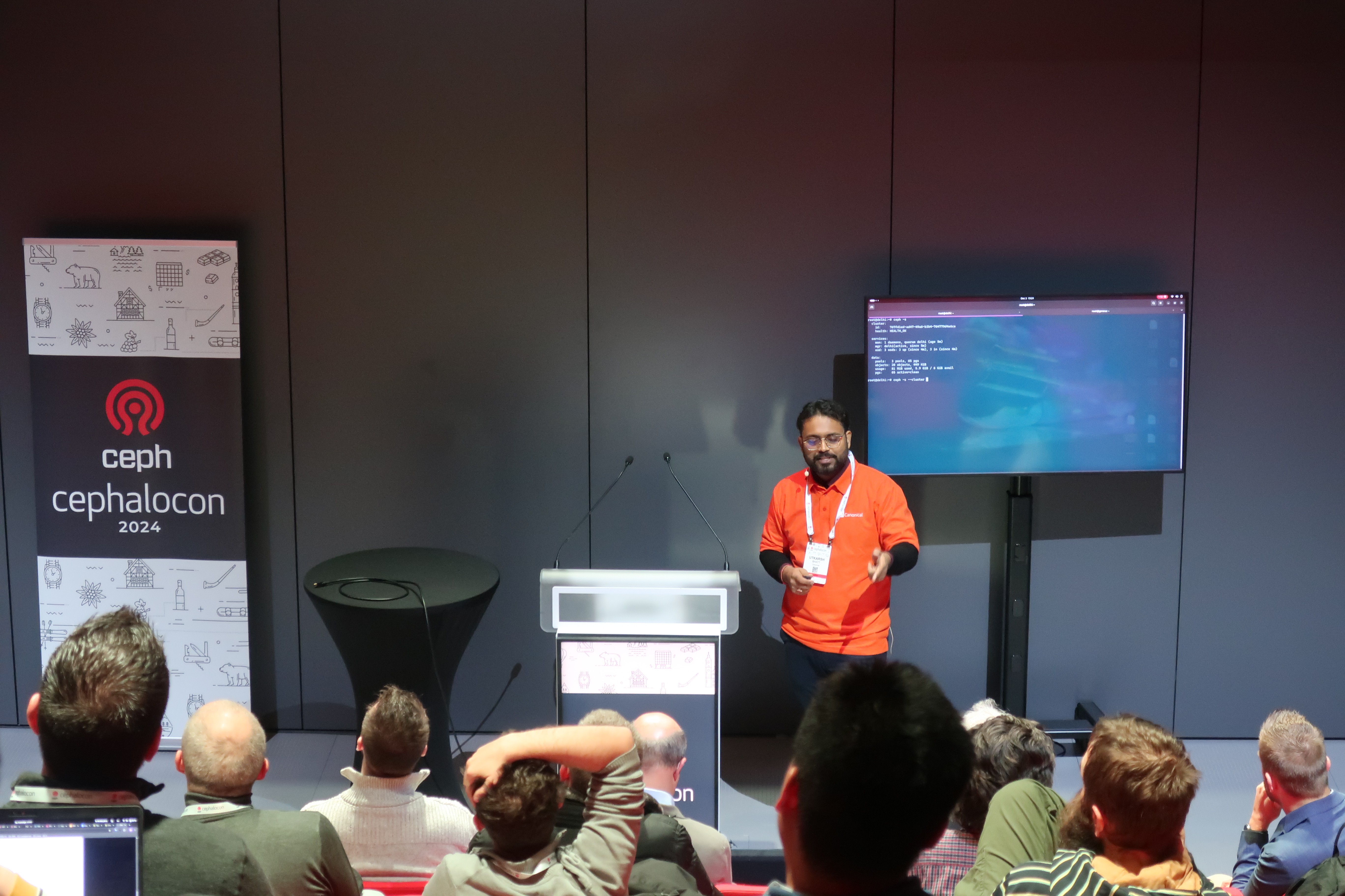 I presented what we were cooking for the past cycle to the Ceph community. The talk had a brief overview of MicroCeph RBD replication and a demonstration of how an operator can take advantage of it to set up and configure remote replication for MicroCeph clusters. I could sense some of the viewers catching the MicroCeph vibes as they shared my excitement while watching MicroCeph replication UX on the huge screen above my head.